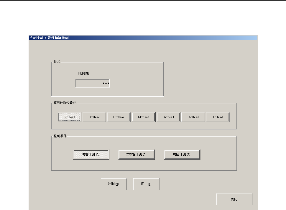 第 2 部 功能详解篇 第 9 章 手动控制 9-69 (3) 控制项目 通过单选按钮选择控制项目。 1) 电容计测 测量电容器元件的容量。 选择 [ 计测( S ) ] 按钮、 [ 模式( M ) ] 按钮,或按下 [F3] 键、 [F4] 键、 [F5] 键,来进行控制。 2) 二极管计测 测量二极管元件的极性。 选择 [ 计测( S ) ] 按钮、 [ 模式( M ) ] 按钮,或按下 [F3] 键、 [F4] 键、 [F5] 键…