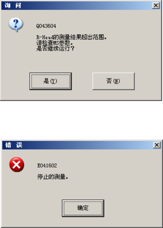 如果是激光识别错误或测量结果超出规定范围外以外的错误,则显示对象错误的提示信息后,