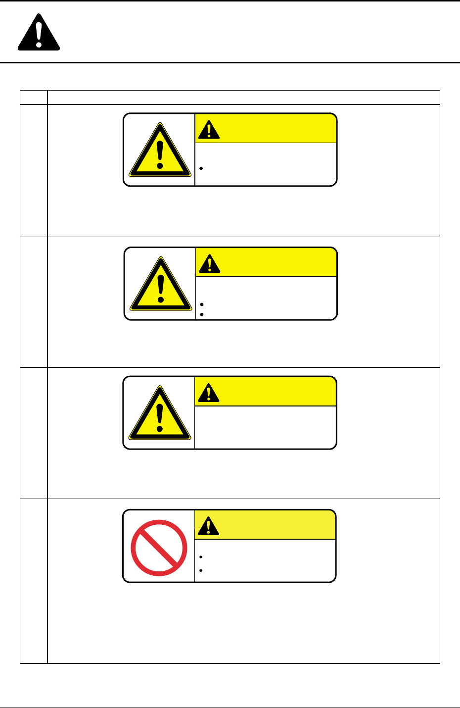 Safe-20 Safety Precautions No. Alert Labels and Description (9) Description z Before the machine is powered, be sure to connect a ground wire correctly to avoid an electric shock. Imperfect grounding will cause an electr…
