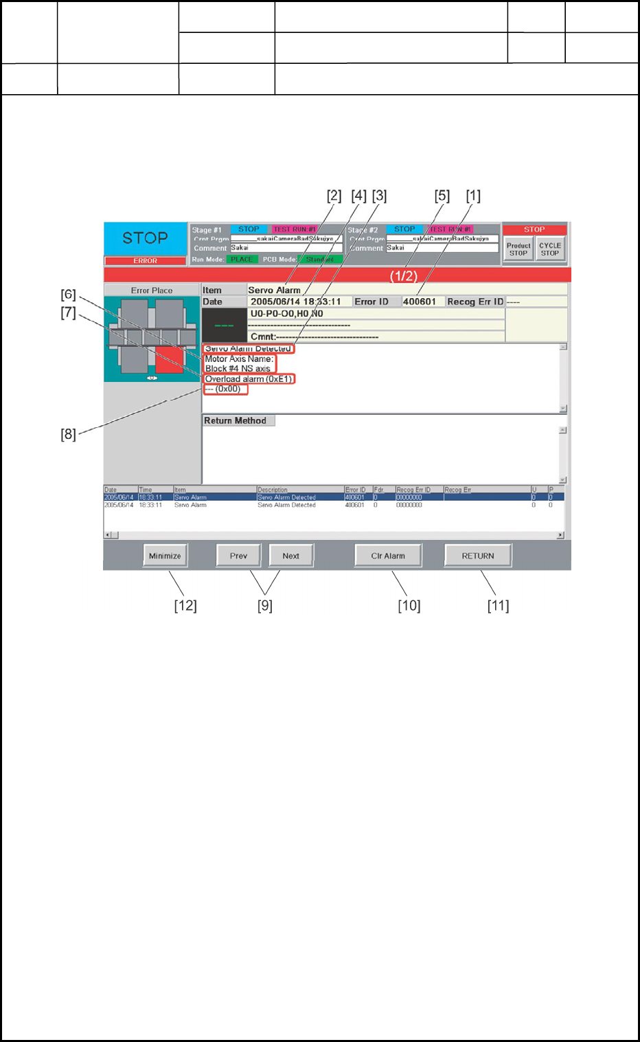 1.1 "ERROR" Window for Servo Alarm