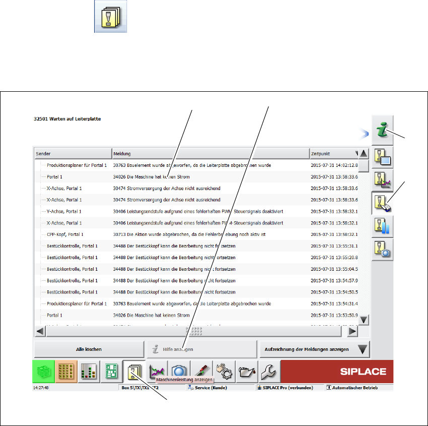 图 5.6 - 2 示例:警报列表 (示例为 SIPLACE SX2 型贴片机)