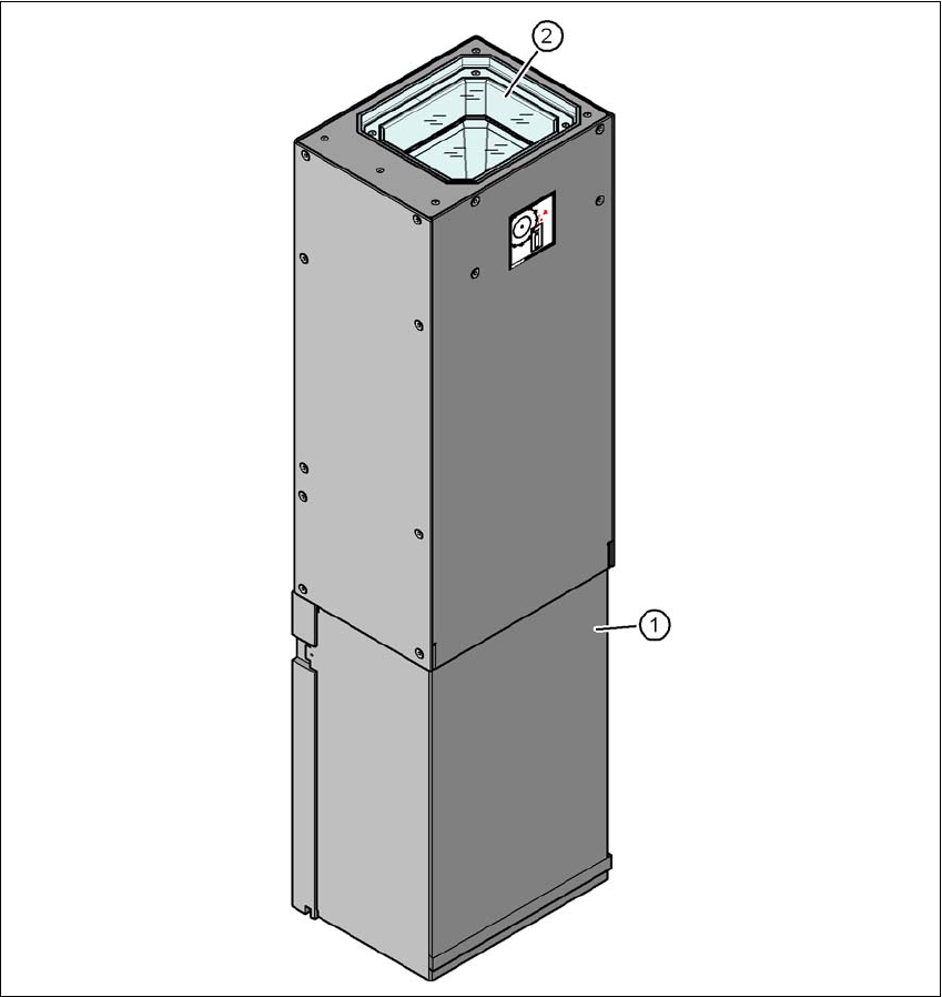 6 工作站扩展部件 《用户手册》 SIPLACE X- 系列 6.11 静止相机 使用软件版本 710.0 或更新 版本 12/2016 376 6.11.2 元件相机,静止 P&P (33 型,55 x 45,数字) 物件号:0310519 8-xx CPP 贴片头的静止摄相机, 33 型 6 图 6.11 - 2 静止 P&P 元件相机 (33 型, 55 x 45,数字)的结构 (1) 带集成相机和相机放大器的相机…