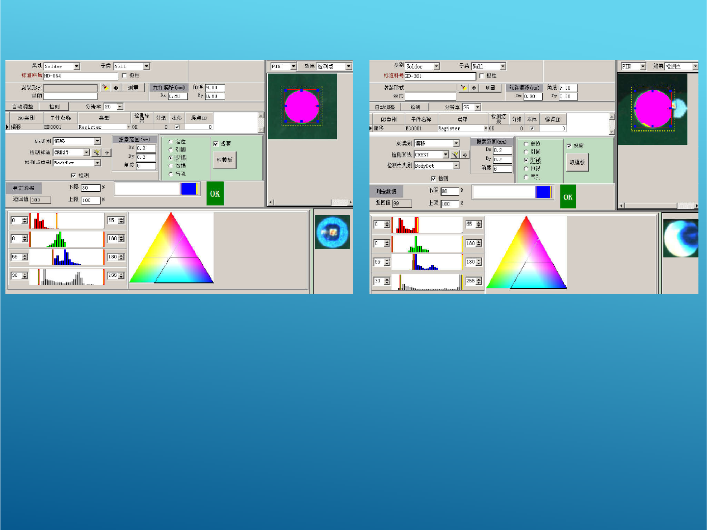 少锡主要检测蓝色成分是否能达到要求,默认限制范围为80-100