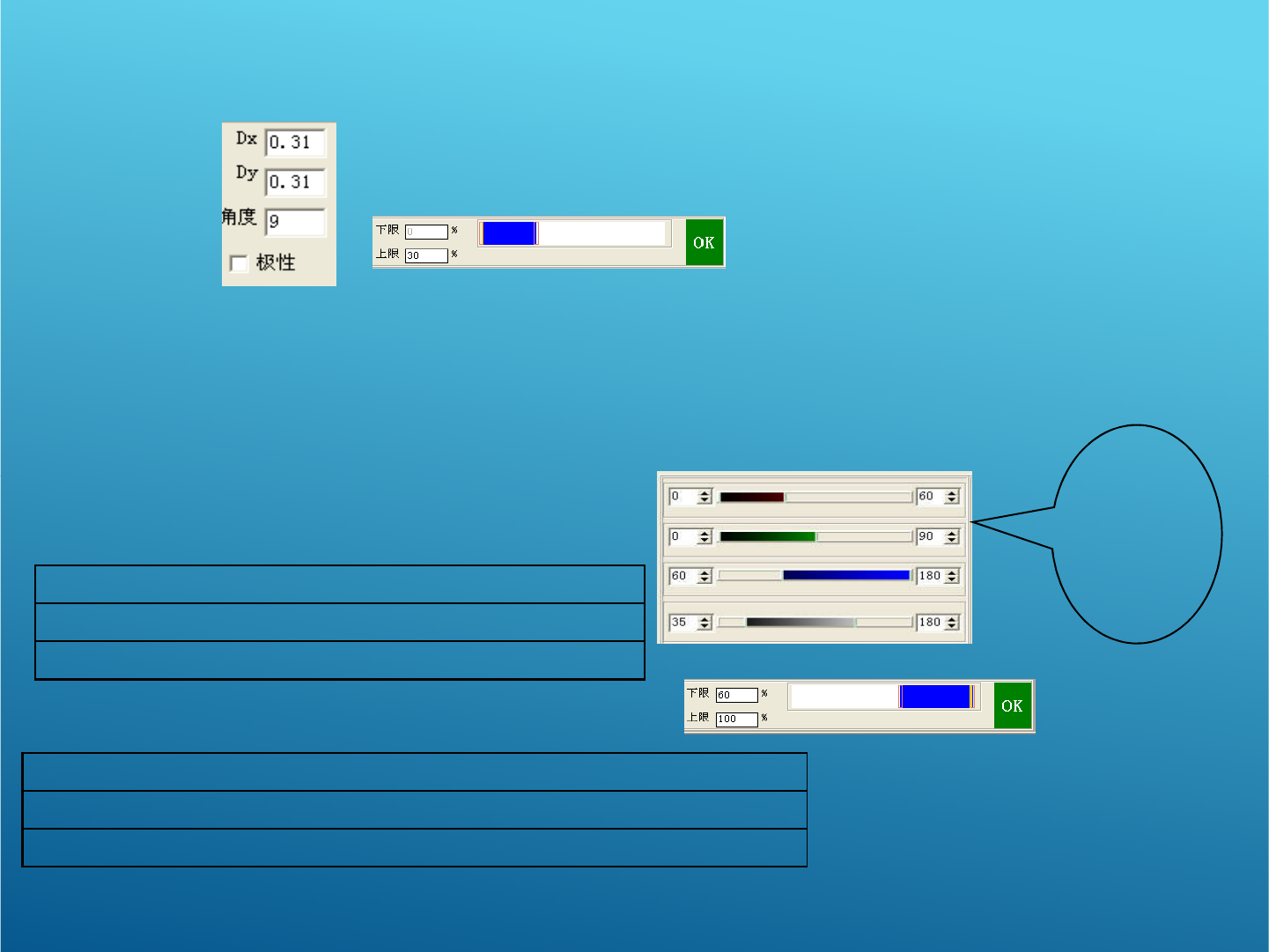 红色:0-85绿色:0-90蓝色:45-180亮度:0-200