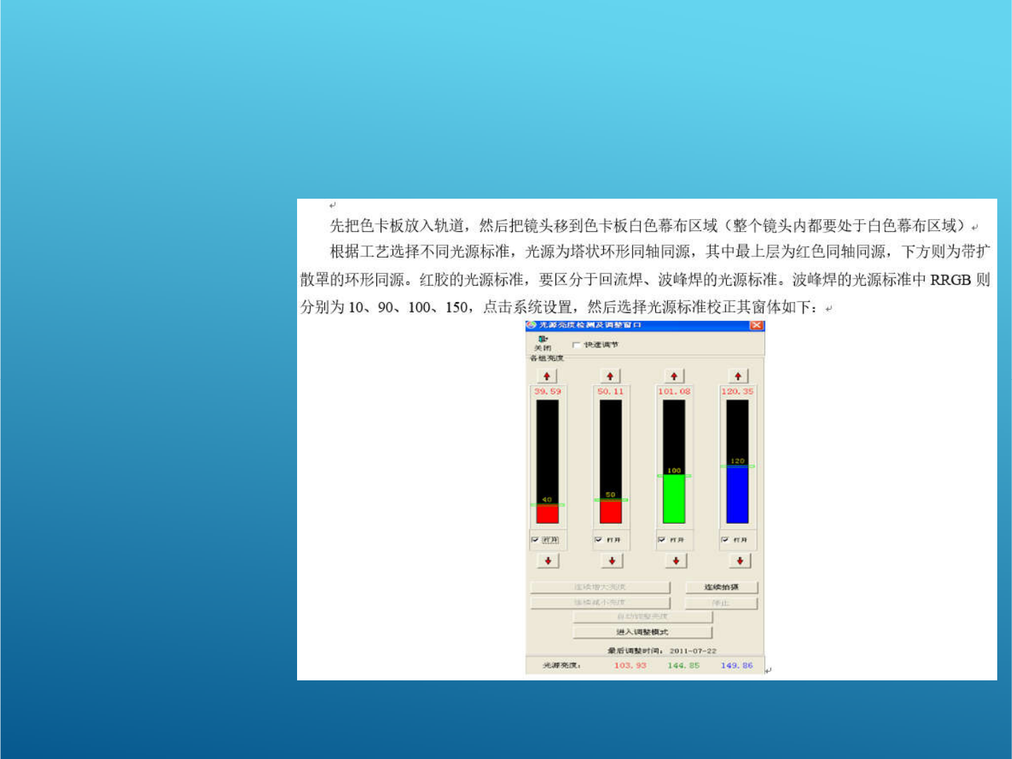 校正方面主要包含“光源亮度检测”及“摄像头标定”