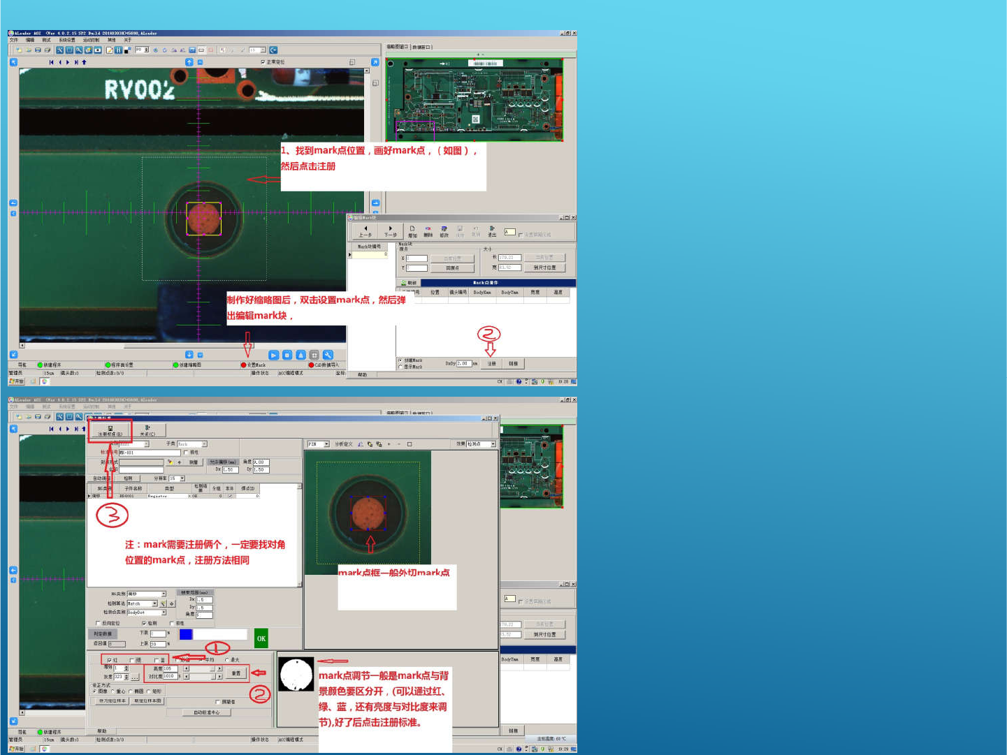 找到板上标准MARK点的位置并