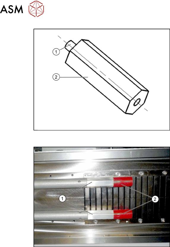 3 Einbau 3.5 Verwendung des MTC mit einem SIPLACE CPP 32 Assembly Instructions / Montageanleitung SIPLACE X-Series S MTC2 at Location 2 MTC2 an Stellplatz 2 05/2019 Abb.26: Verlängerung 1. M8-Gewinde 2. 70mm-Verlängeru…