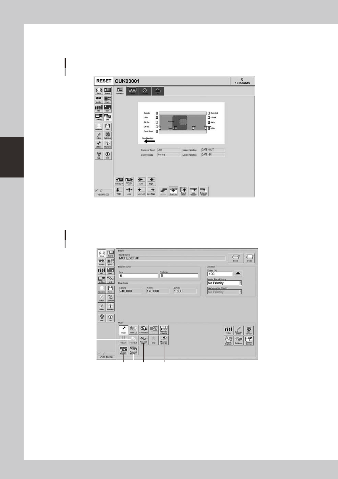 the board. For further details, refer to "3.4 Adjusting the convey unit setup" in Chapter 2.