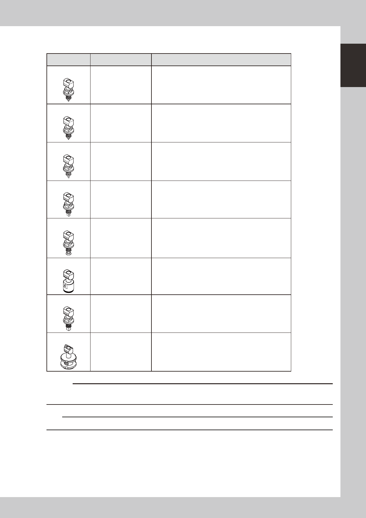 1-8 1 Part names and functions 3.2 Nozzle types T o ensure stable component pickup, the correct nozzle that matches the component must be used. T he following sections explain typical nozzles w hich can be attac hed to e…