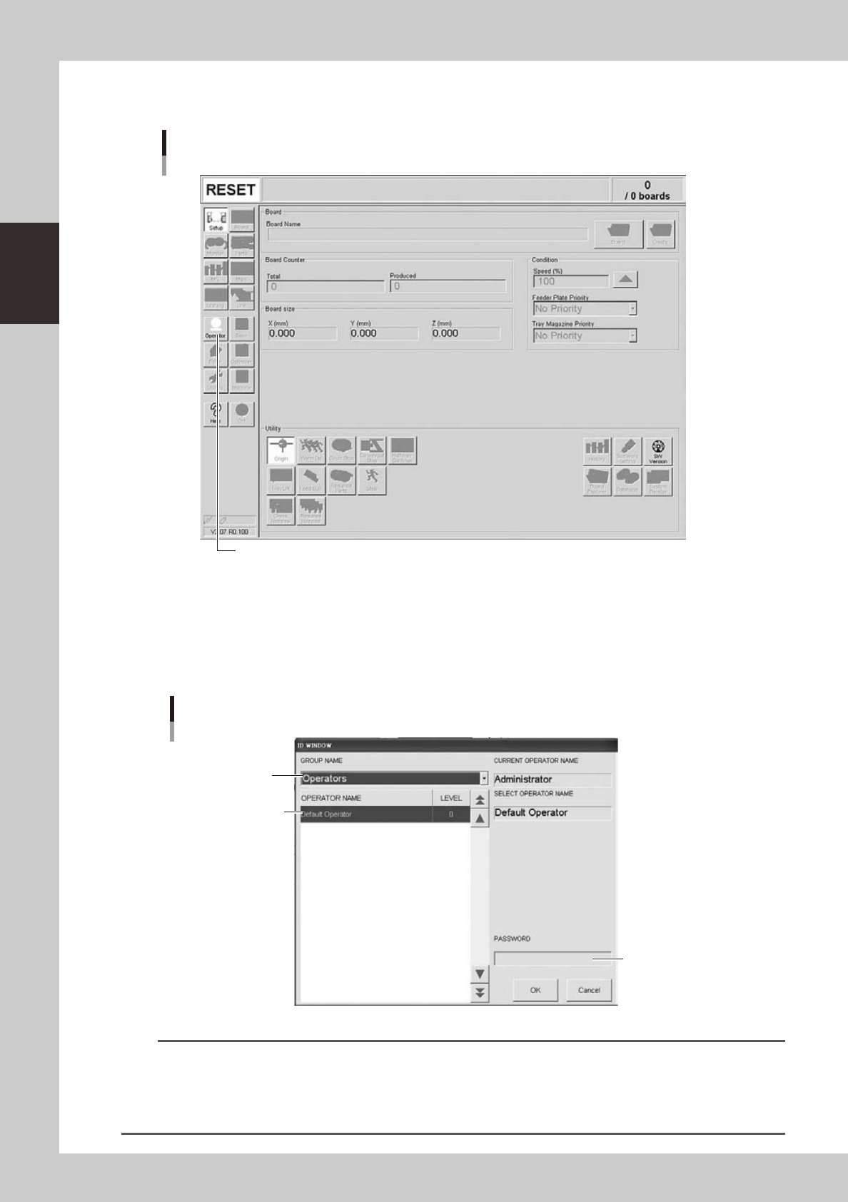 Press the [Operator] button to open the ID WINDOW.