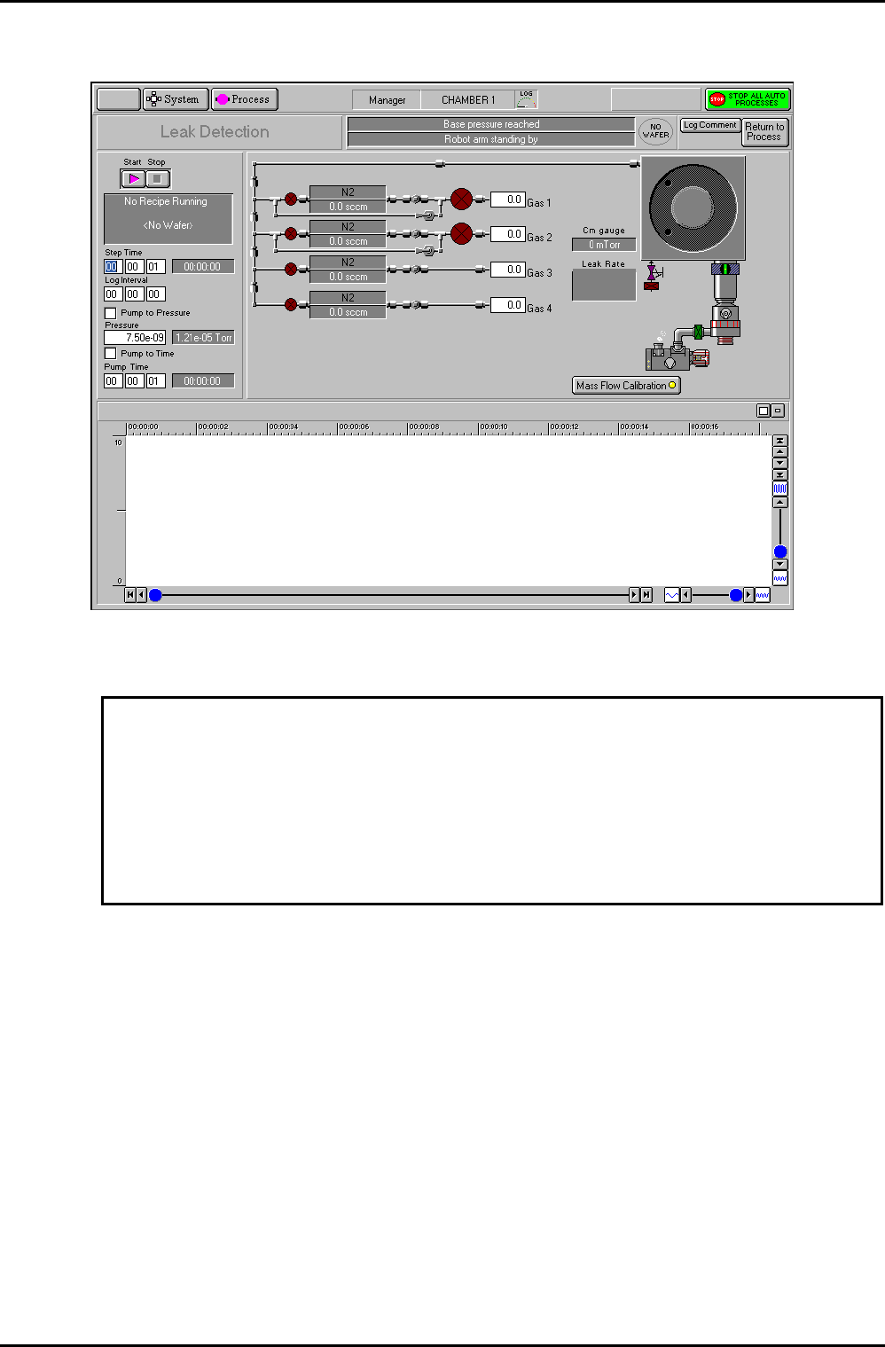 The Leak Detection page for a process chamber can be used to check the rate-of-pressure rise