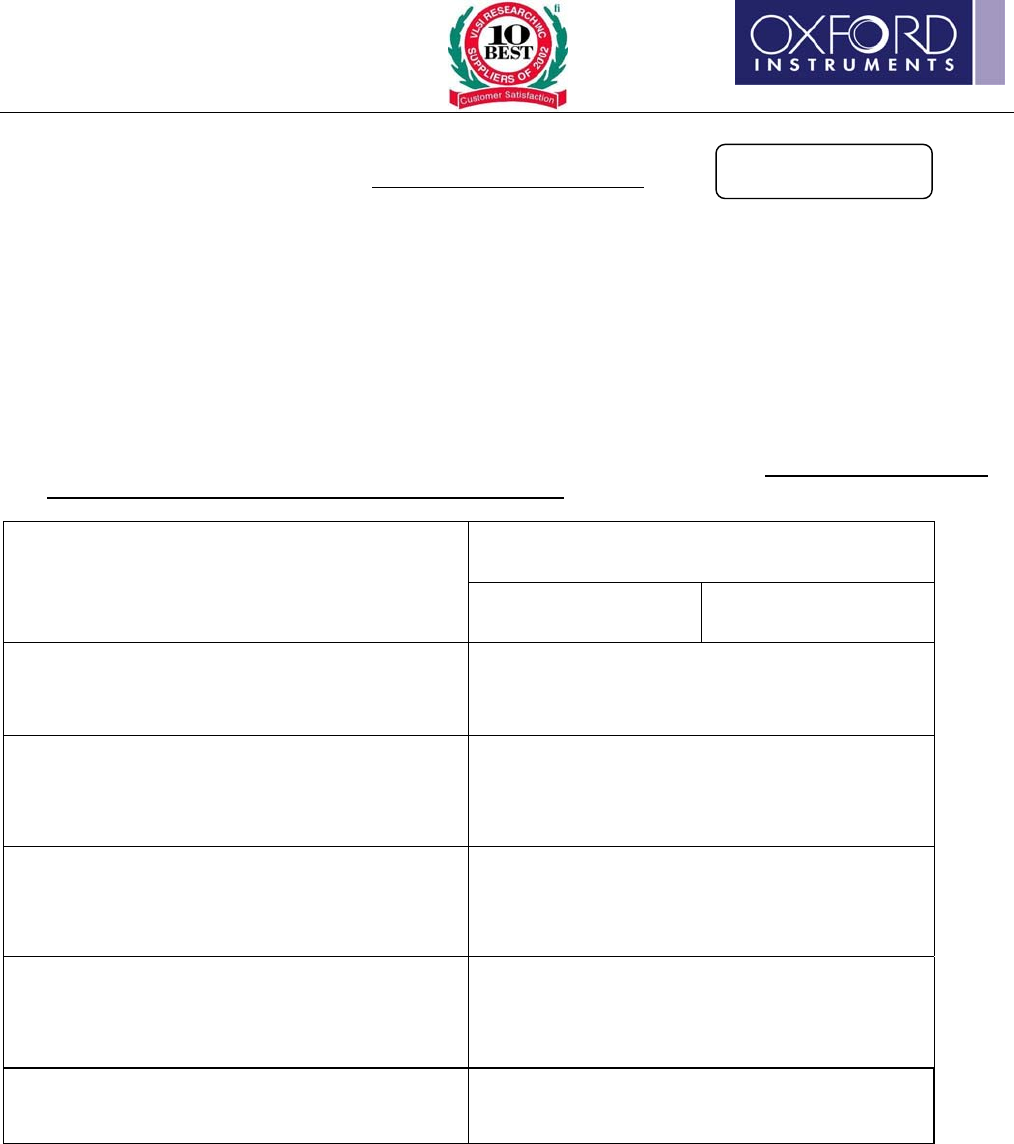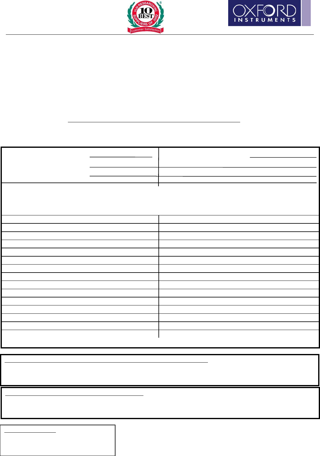 • This form must be completed and a copy sent to Oxford Plasma Technology Service Department by fax or mail