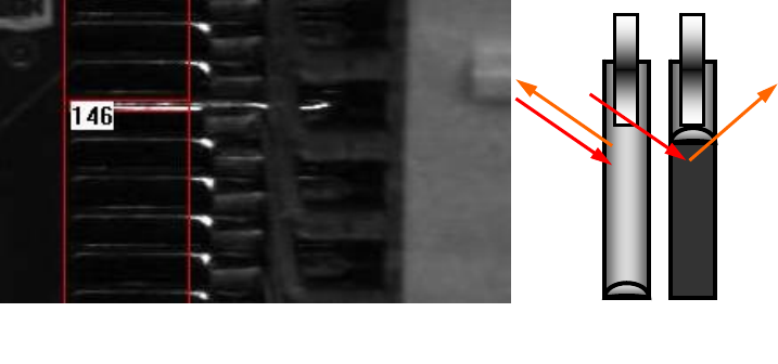 當正常吃錫情況,IC 腳前方的 PAD 為平面,無燈光反射回 Angle Camera,故正常 IC