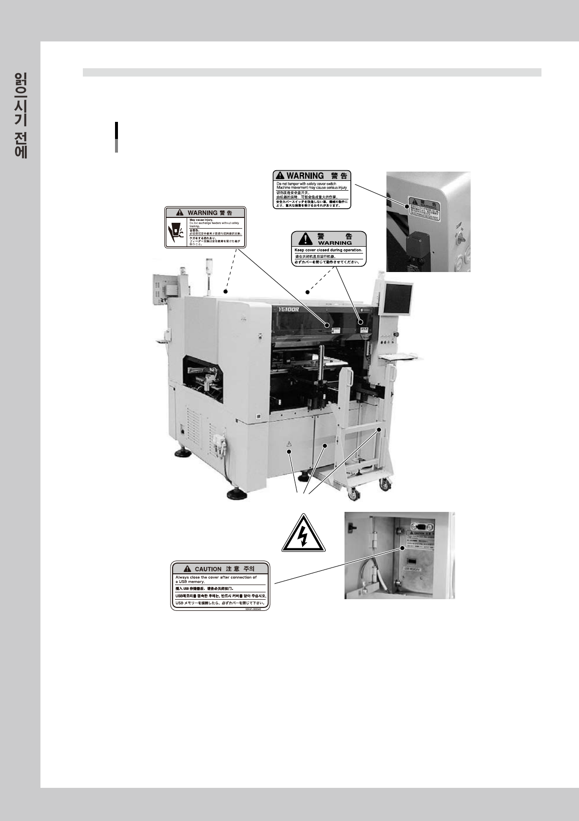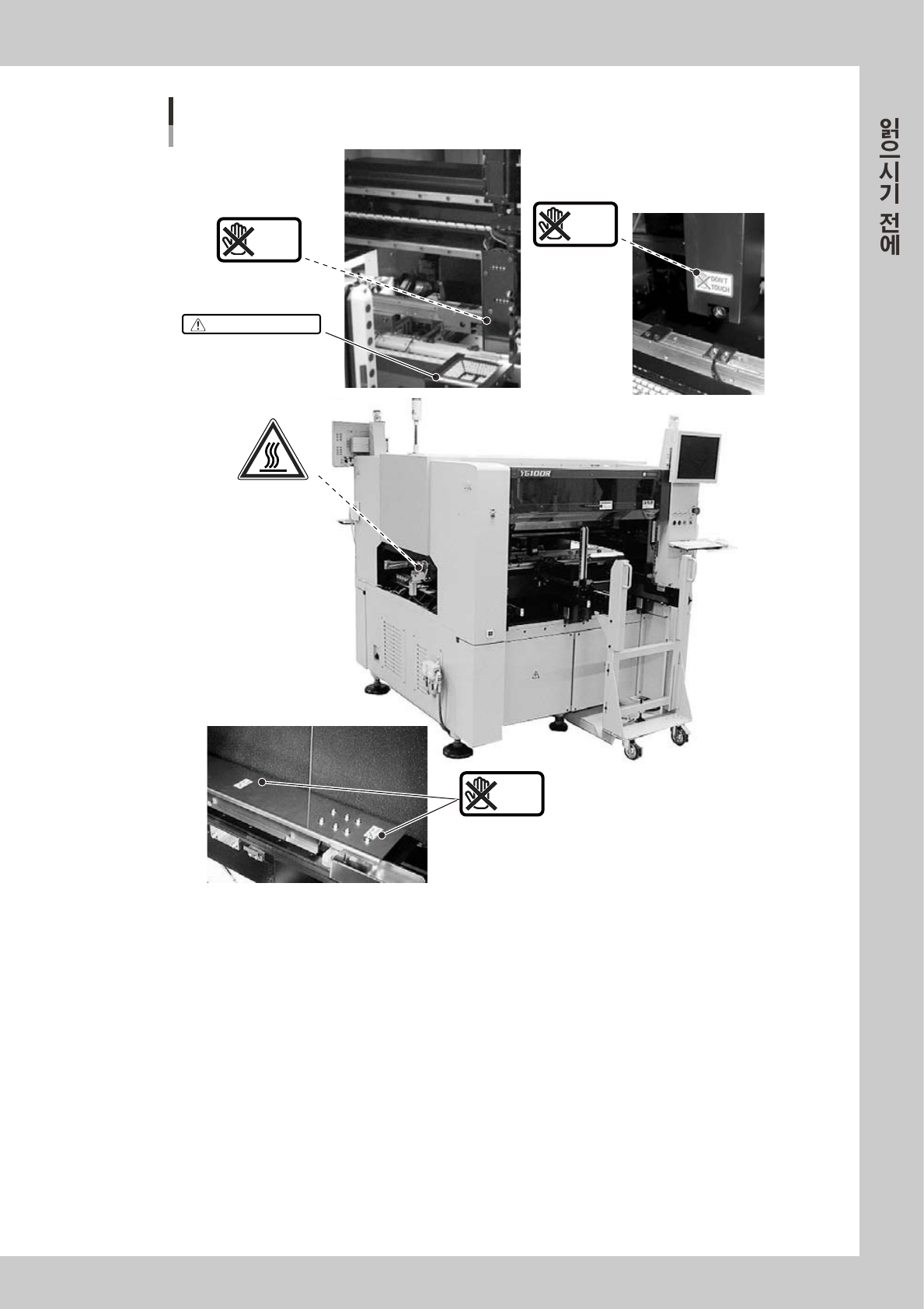장비를 정확하고 안전하게 사용하기 위해 , 본체 및 주변기기에 아래 내용의 경고표시를 했습니다 .