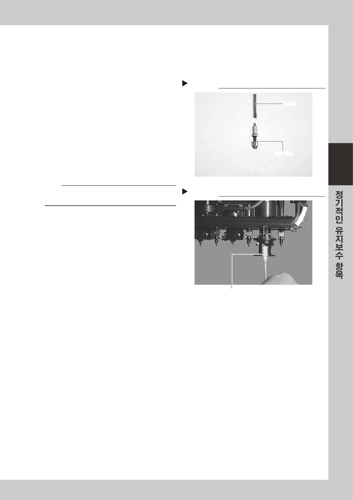 노즐 ASSY 의 분해청소시에 , FNC 락 핀과 그 삽입부도 청소할 것을 권장합니다 .