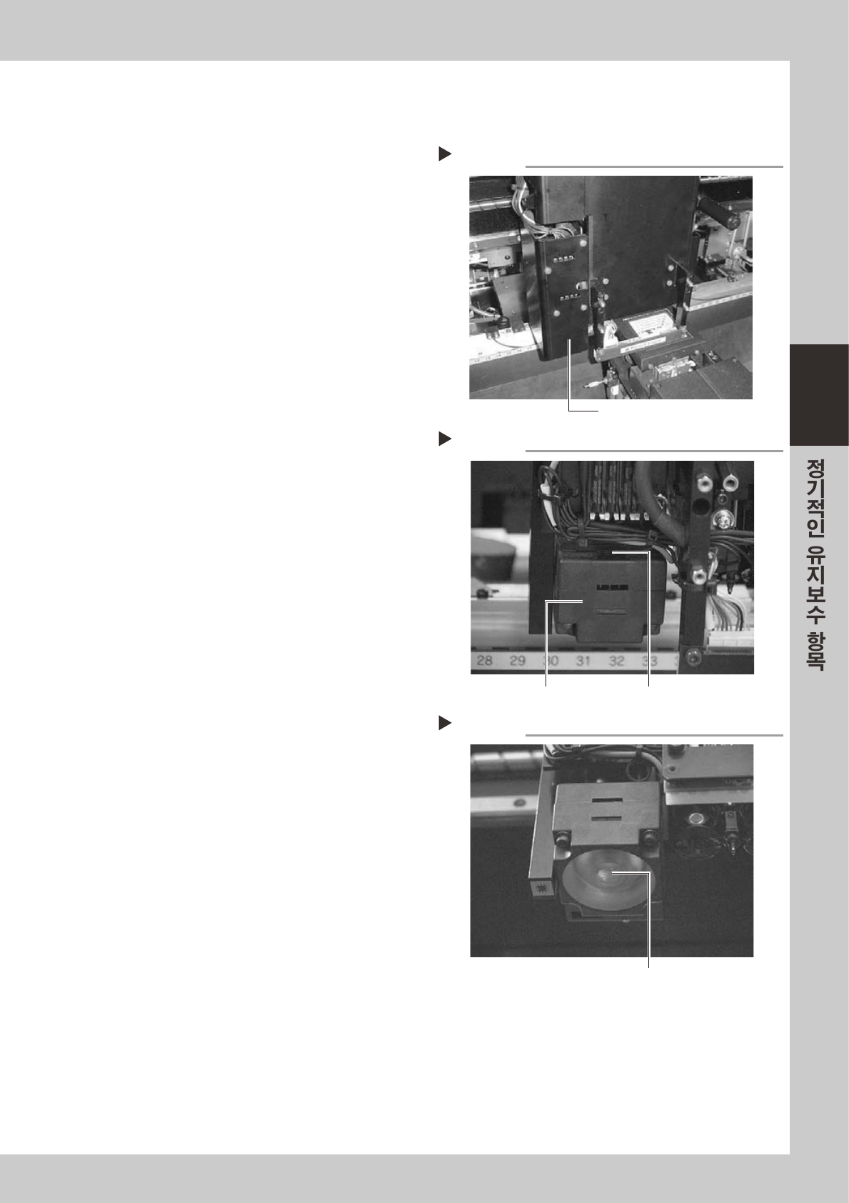 피듀셜마크인식카메라는헤드부의좌측에장착되어있습니다 .이카메라의조명유니트를청소합니다 .
