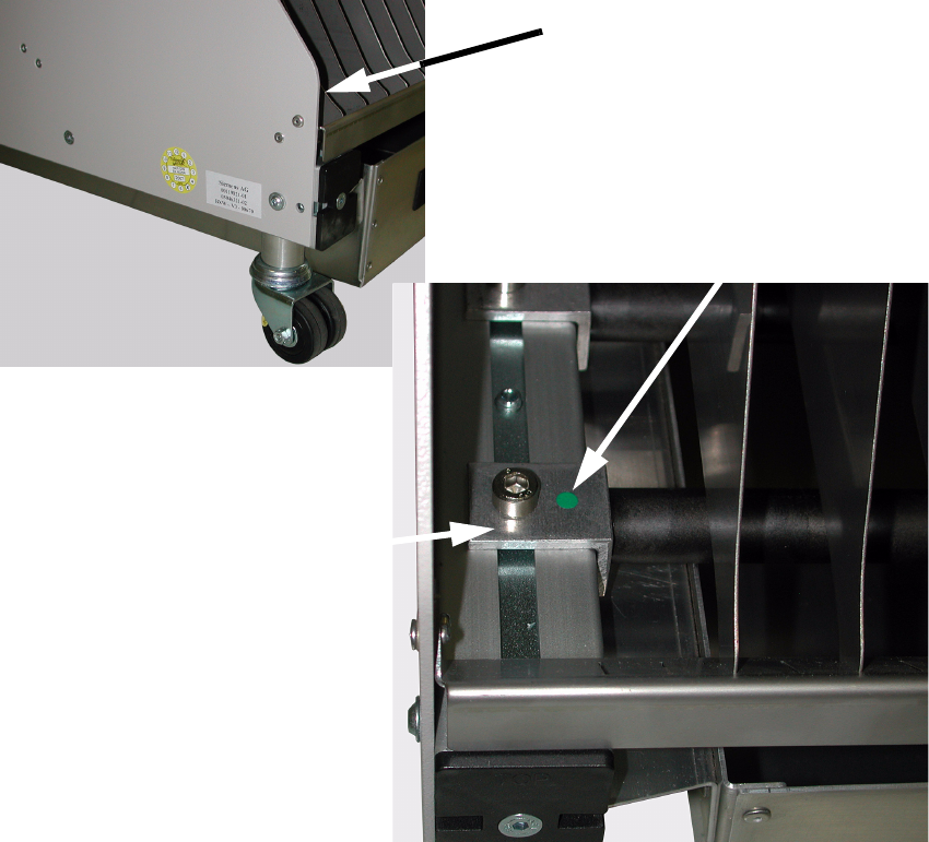 : Entnehmen Sie ein oder mehrere Gurtrollenbleche (falls im BE-Wagen), um die Aufklebeposi-