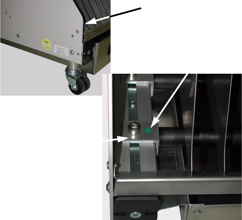To identify the retrofitted component trolleys with the new sleeves, a self adhesive green sticker
