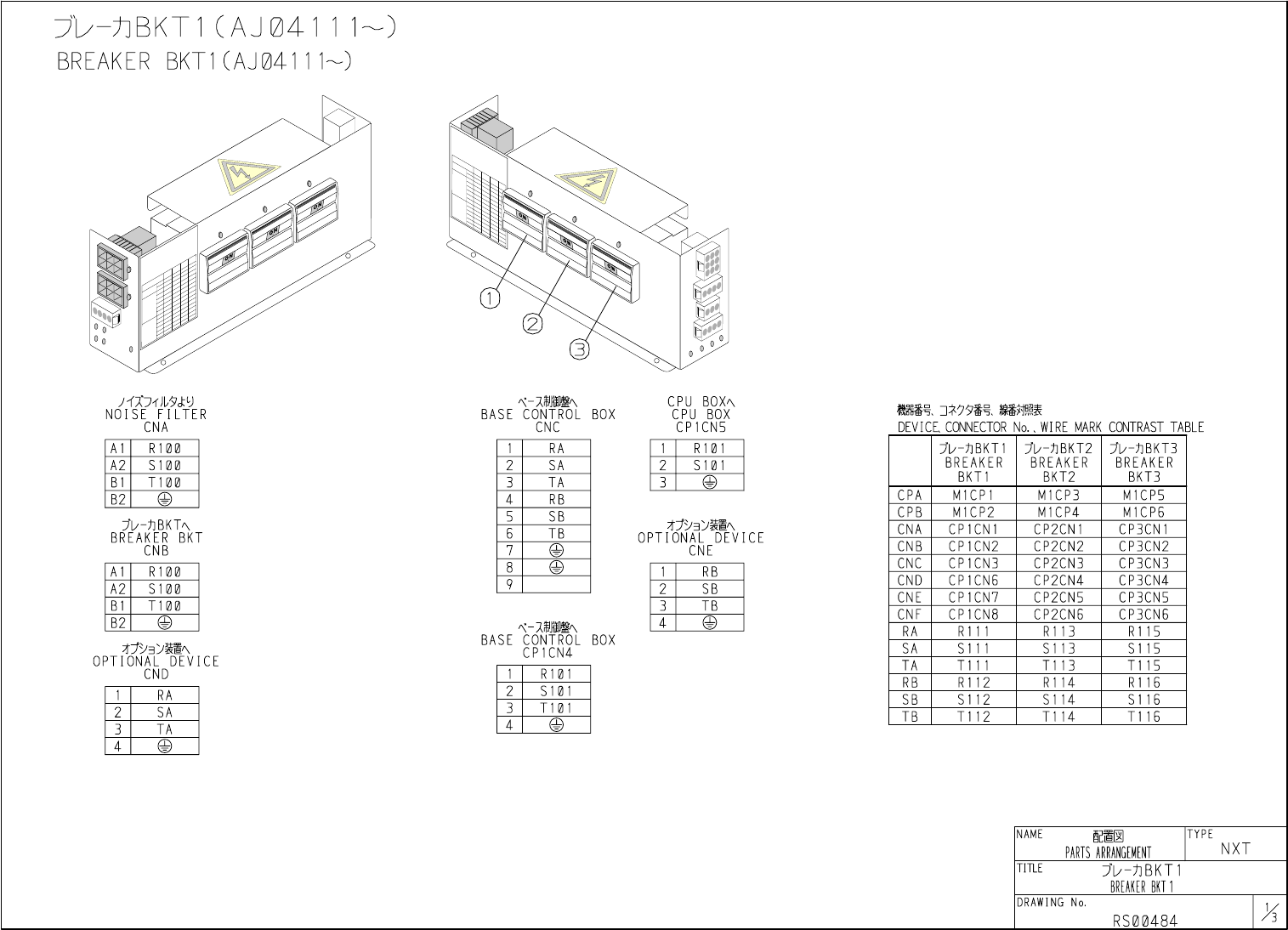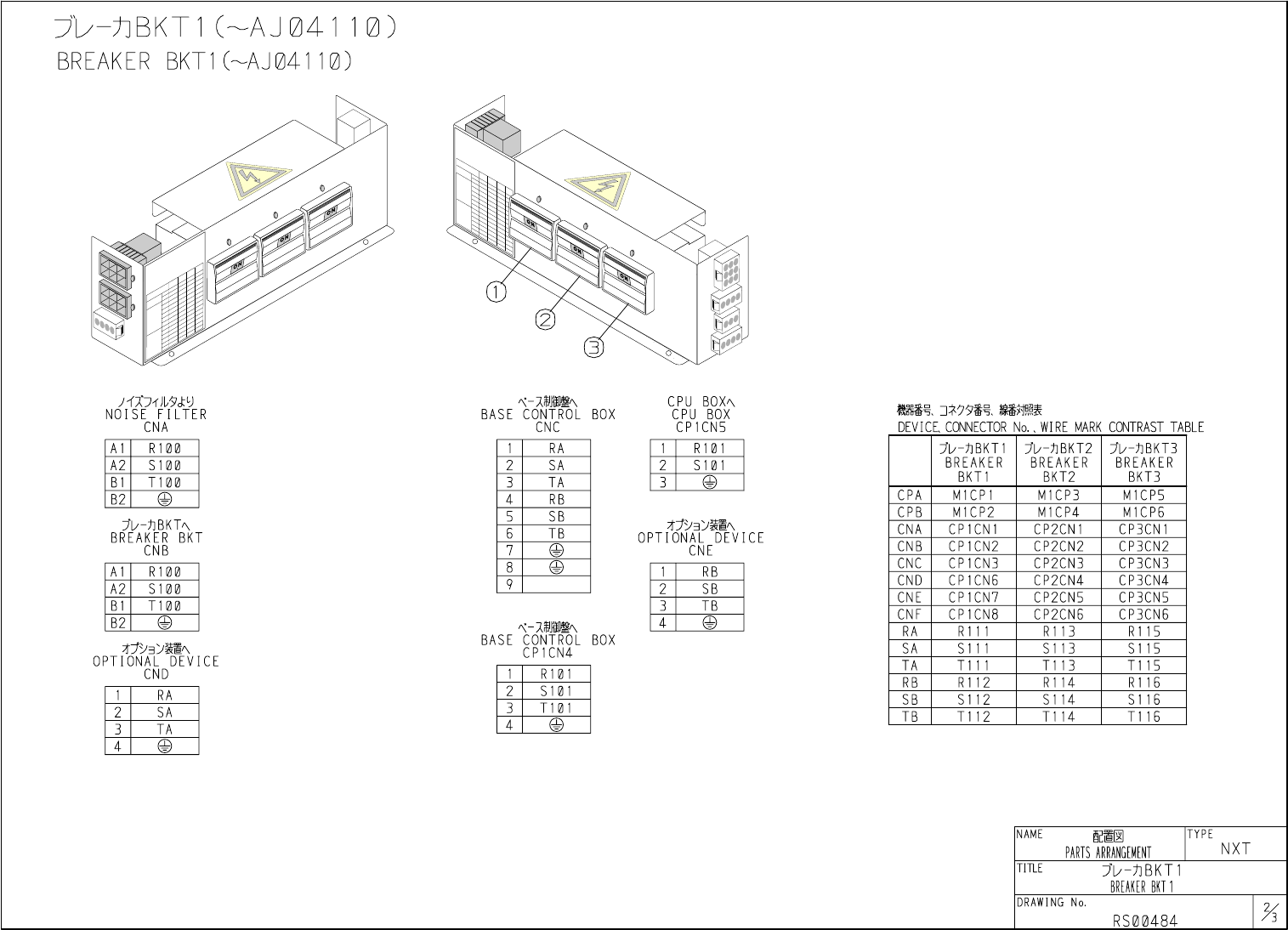 サ ー キ ッ ト ブ レ ー カ に つ い て 接 続 す る モ ジ ュ ー ル に よ り 、 機 器 番 号 、 コ ネ ク タ 番 号 、 線 番 接 続 モ ジ ュ ー ル が 変 わ り ま す の で 、 下 表 の よ う に 対 応 し て 下 さ い 。 C i r c u i t B r e a k e r A p p a r a t u s n u m b e r s , c o n n e c t o r …