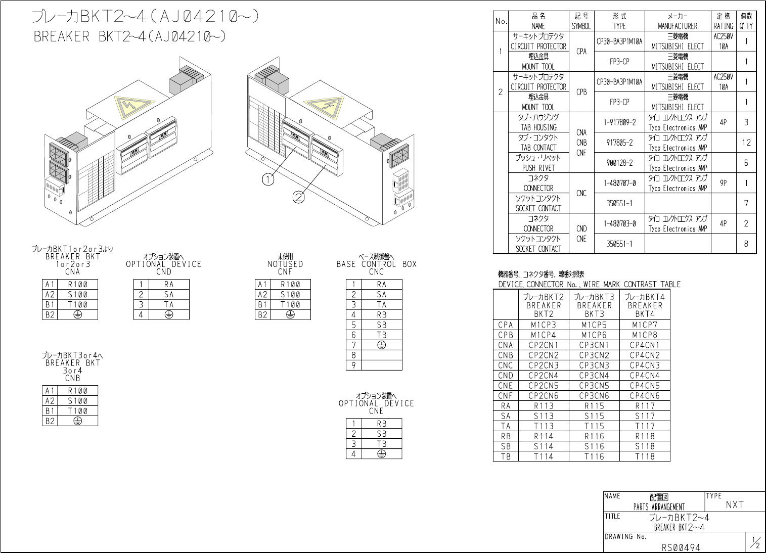 CND CNB CNA サ ー キ ッ ト ブ レ ー カ に つ い て 接 続 す る モ ジ ュ ー ル に よ り 、 機 器 番 号 、 コ ネ ク タ 番 号 、 線 番 接 続 モ ジ ュ ー ル が 変 わ り ま す の で 、 下 表 の よ う に 対 応 し て 下 さ い 。 C i r c u i t B r e a k e r A p p a r a t u s n u m b e r s , c o n …