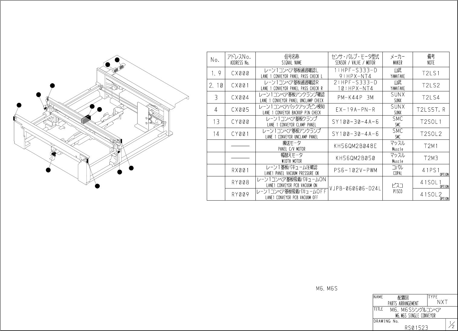 4 3 2 4 1 1 2 13 14 9 10 M6シングルコンベア M6 SING LE CONVEY OR