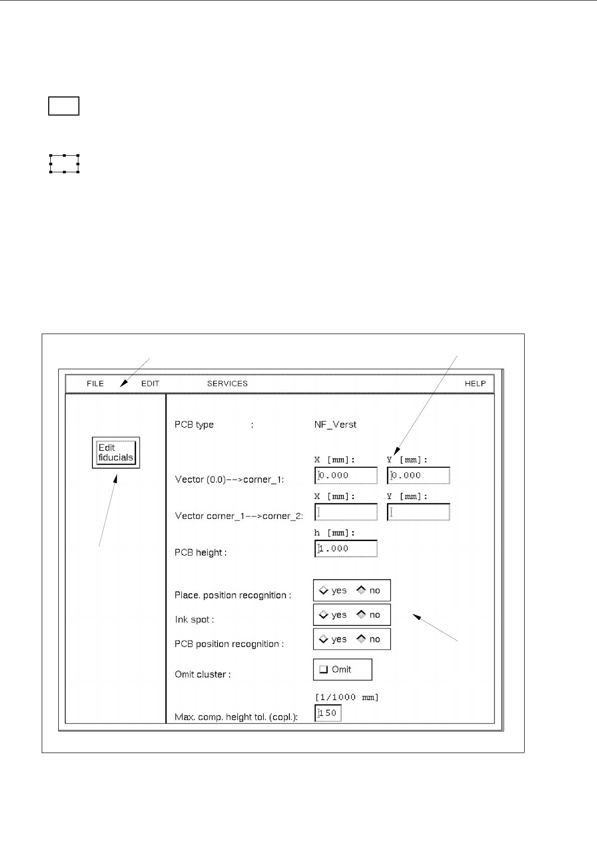 The window of the Fiducial Editor is opened by clicking on this button (see Fig. 8.1.10).