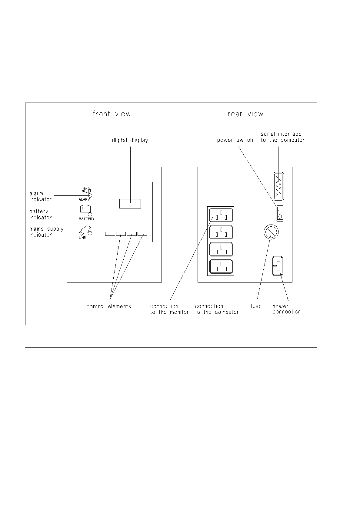 Fig. 1.2.6 UPS - connections, indicators, control elements