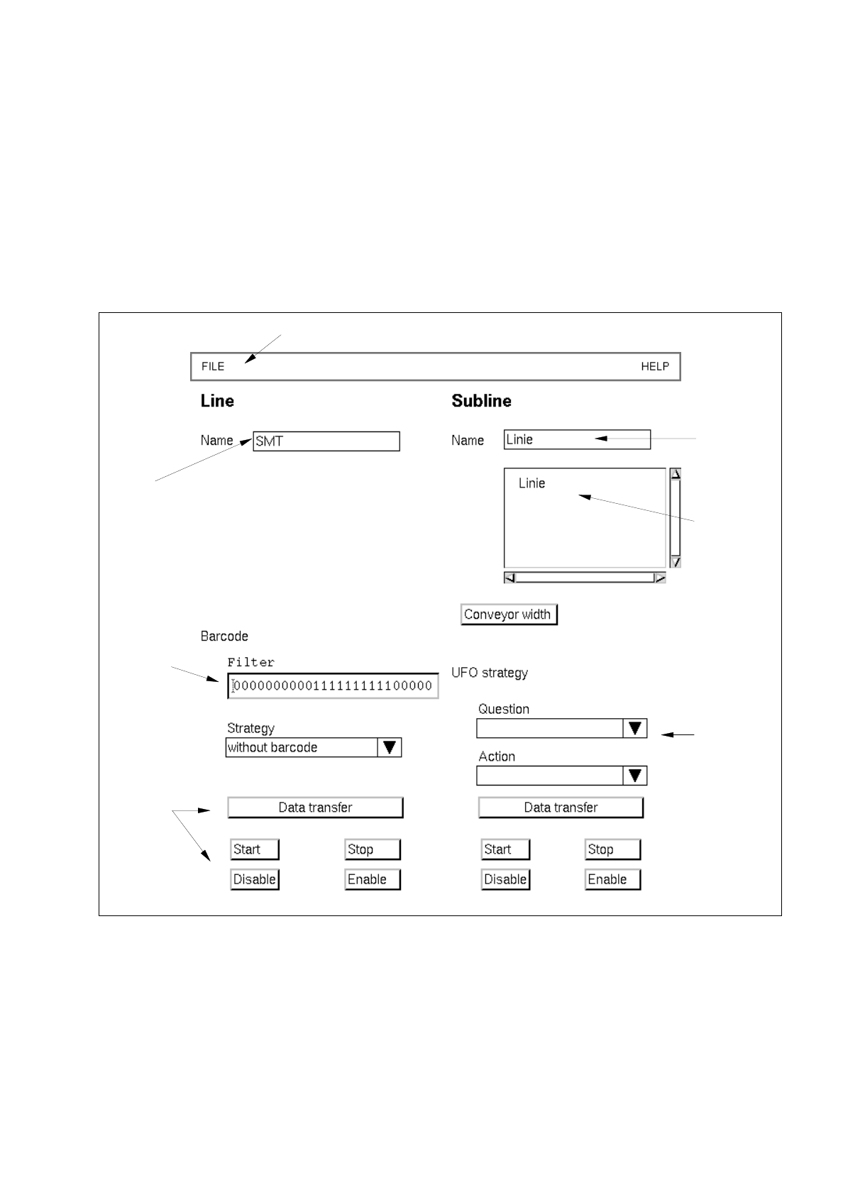 In the following, the different portions of the main window of the Line Control and their functions are explained.