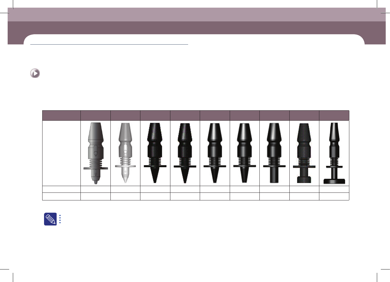 Preparation For Operation Ⅰ > Nozzle type and applied part