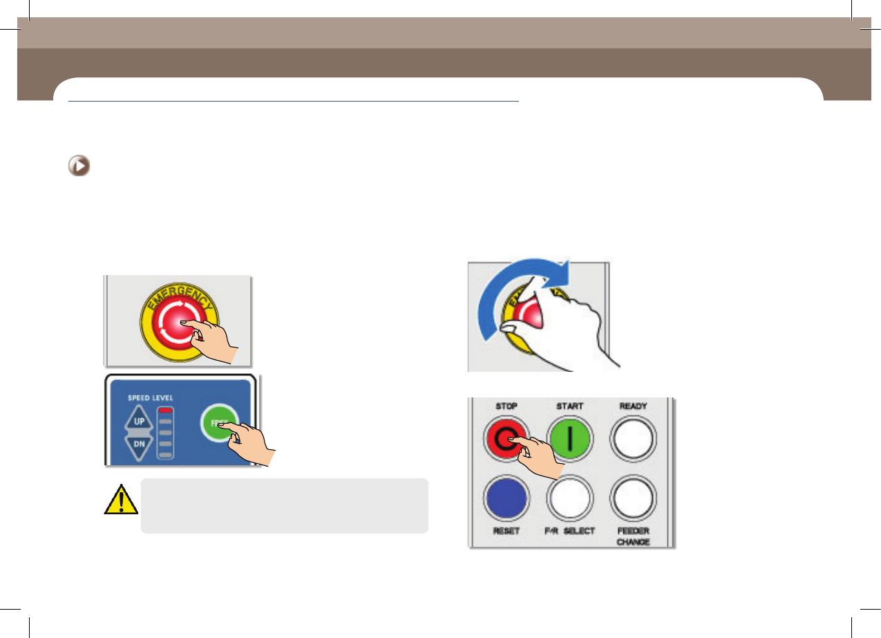Be sure to remove the cause of emergency stop before restarting
