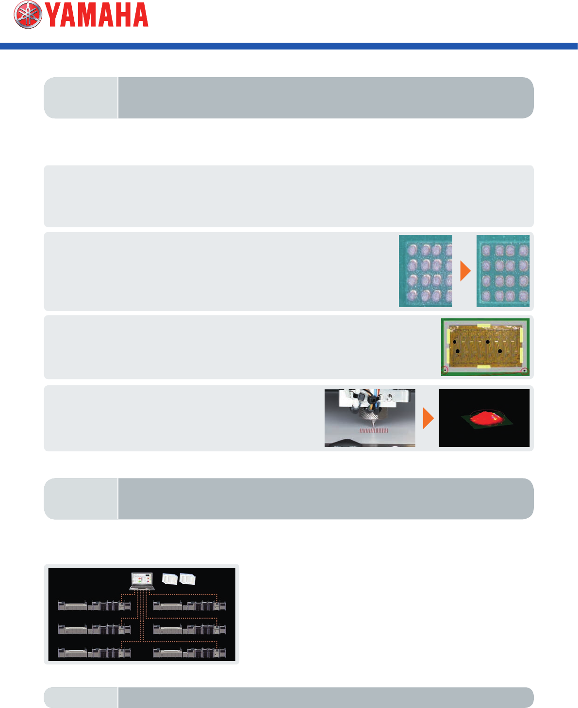 SPI func tion suppor ts vast range of analyses High ac cur acy- hig h speed inspections E x tensive M2M solution to c omplete Y ama ha T rue T otal Line Solution 1 -hea d sol ution for va rious inspections 3D Solder Past…