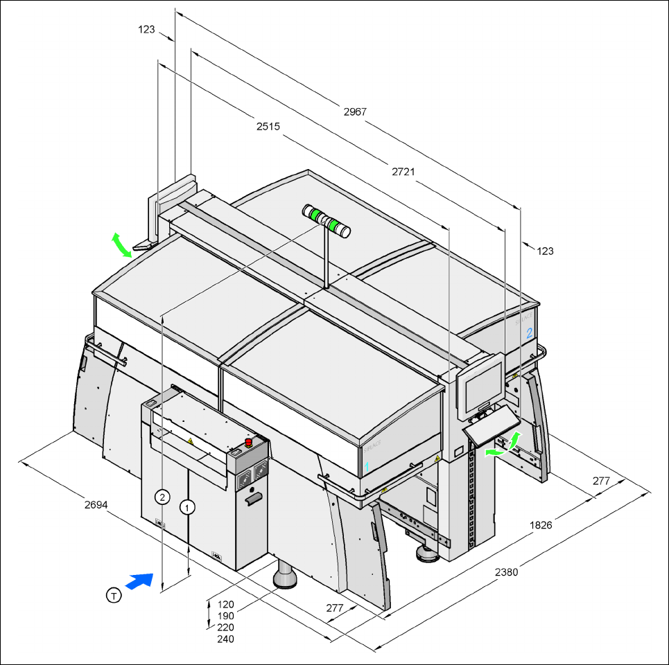 (2) Höhe der Hauptstöranzeige, abhängig von der LP-Transporthöhe, max. 2075 mm