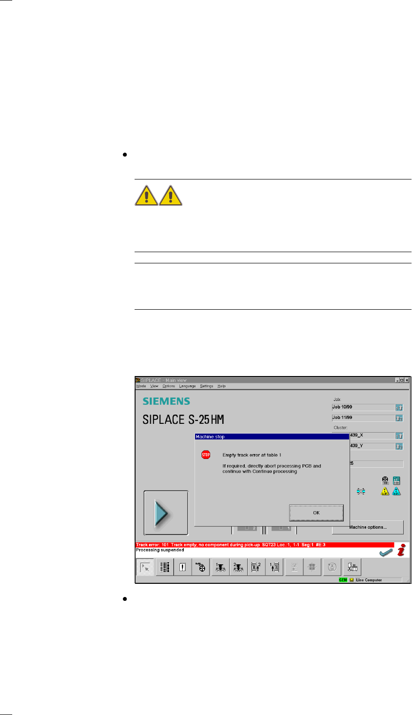 47 Continue processing Refill the compon ents which hav e run out, set th e refilled tr acks to Full and click on C ontinue processing. P lacemen t will now c ontinue until the bo ard is finished. Display e rrors menu Wi…