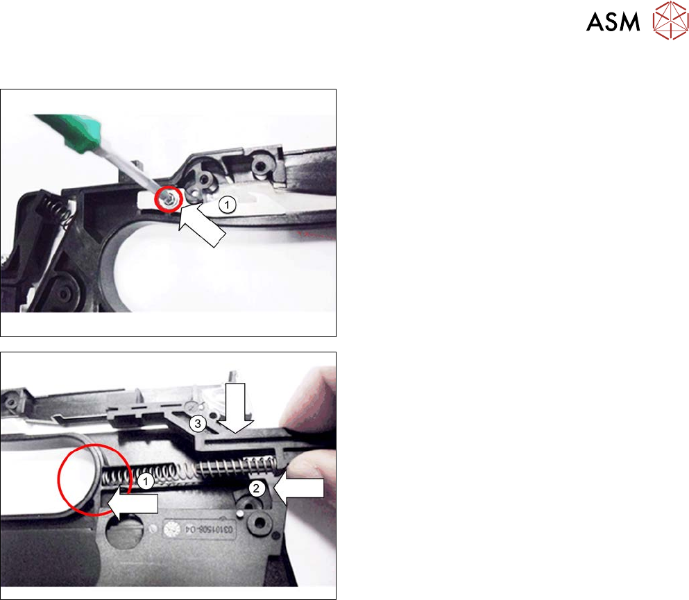 ► Entfernen Sie die Schraube, mit der der Federha-