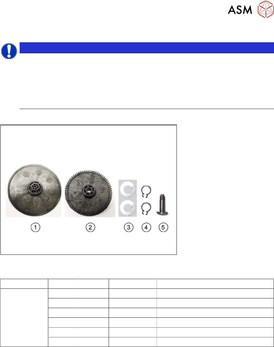 Die im Getriebesatz enthaltenen Ersatzteile sind in der folgenden Tabelle aufgeführt: