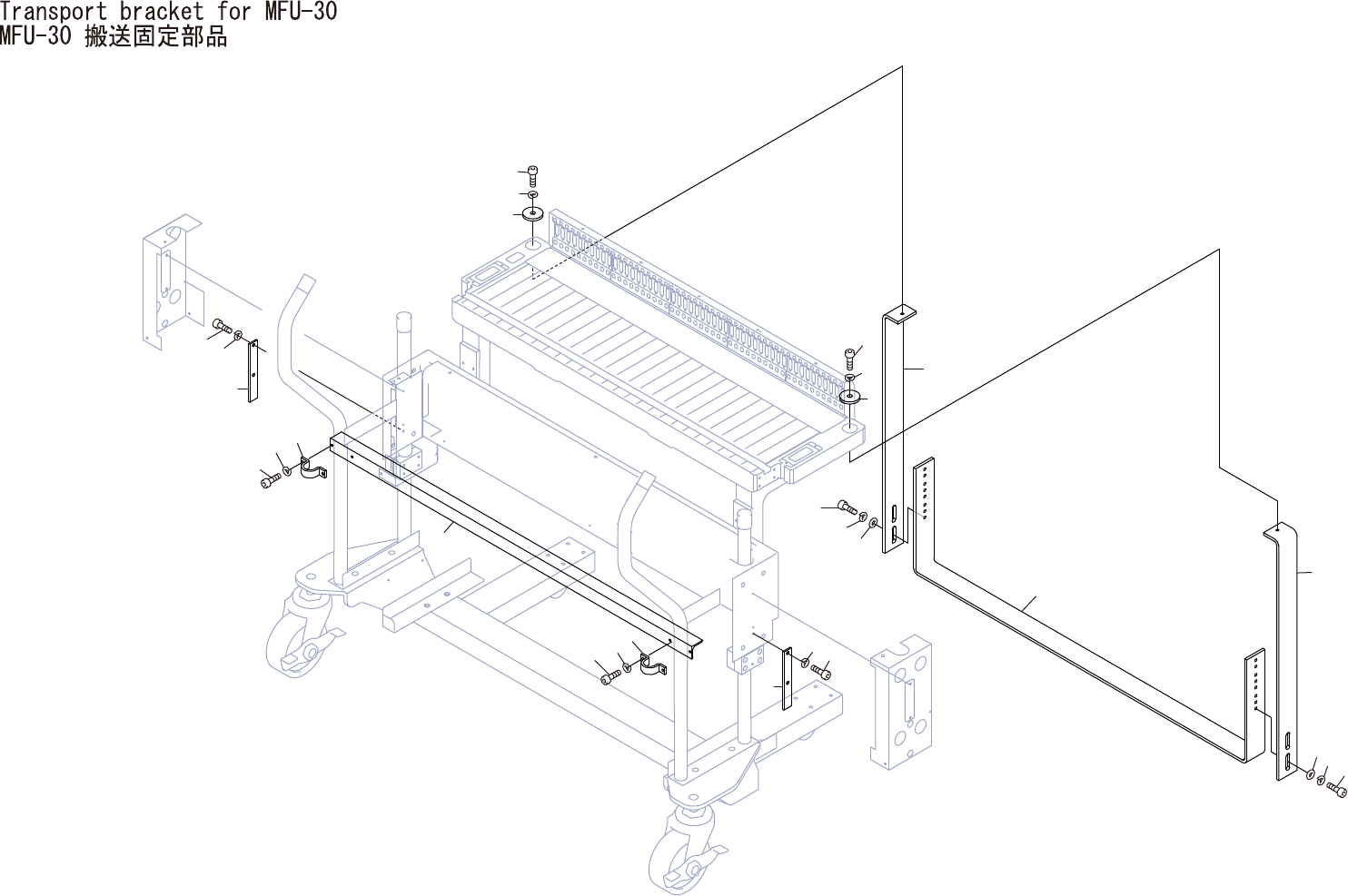 Transport bracket for MFU-30 MFU-30 搬送固定部品 AGGWZ9060 No. Drg.No. & Code No. QTY Description Rating Materials Remarks 番号 図番 & コード番号 個 数 品名 規格 材質 備考 1 GGUF0412 2 PLATE, FIXED プレート 固定 FE T Parts 2 H5320A 4 BOLT, HE…