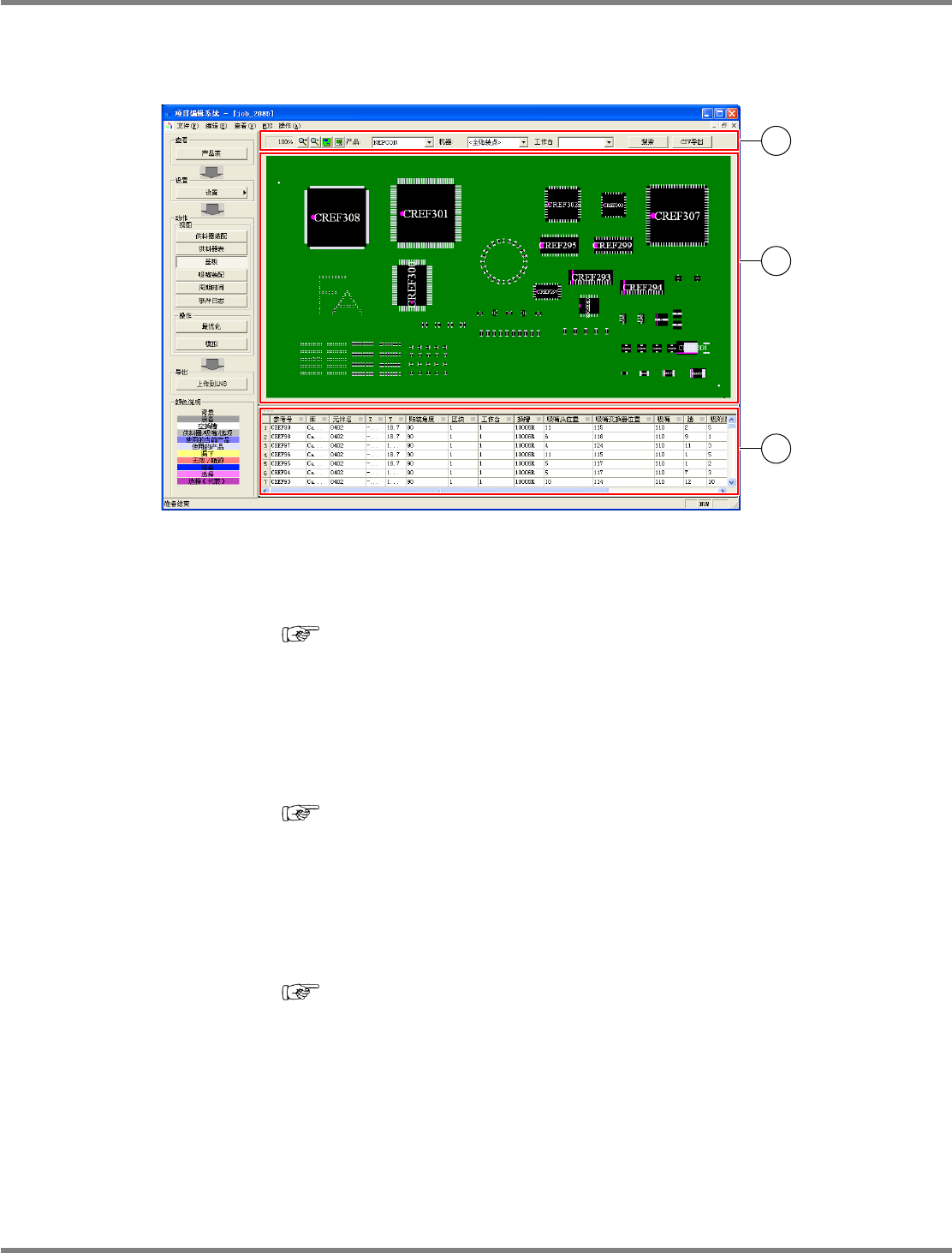 NPM-DGS 程序手册 10.2 编辑生产数据 EJS9AC-MB-10P-13 Page 10-9 10.2.4 供料器表画面 ① 画面显示控制部 ‘ 产品 ’ 选择要显示的 PCB 。 ‘ 机器 ’ 按设备分别显示供料器。 ‘ 工作 ’ 按工作台分别显示供料器。 [ 搜索 ] 显示搜索画面。 ② 供料器表的显示部 操作与 PPD 编辑器的供料器显示部相同。 详细内容,请参照 ‘9.4.4 供料器表画面 ’ 。 LW…