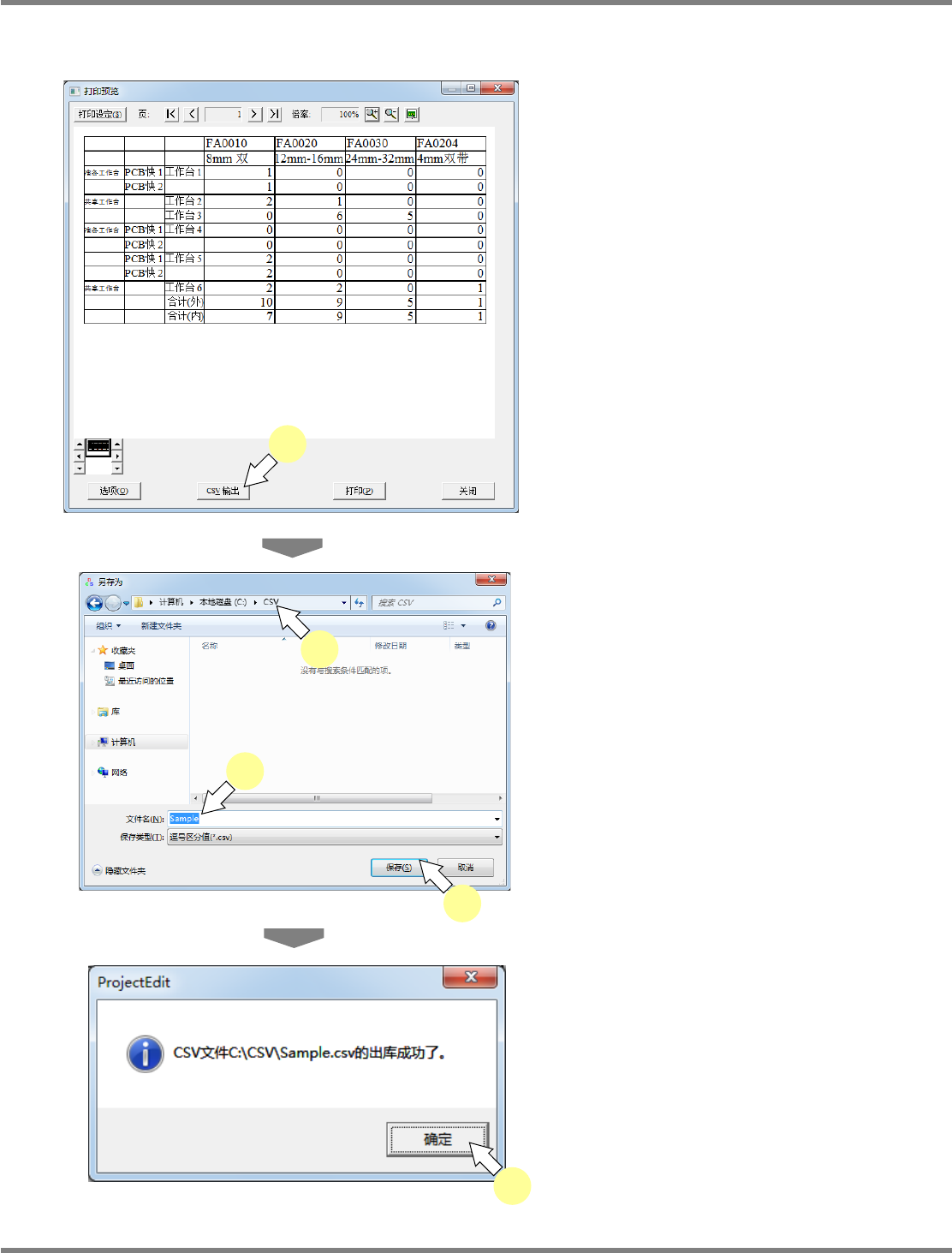 NPM-DGS 程序手册 7.2 项目编辑系统主画面 EJS9AC-MB-07P-35 Page 7-79 C S V 输出 能够在打印预览画面上输出 CSV 文件。 1 点击 [CSV 输出 ] 。 显示出 < 另存为 > 画面。 2 指定保存 CSV 文件的目的处。 3 输入 CSV 文件名。 4 点击 [ 保存 ] 。 5 点击 [ 确定 ] 。 即完成了 CSV 文件的输出。 Product070212S…