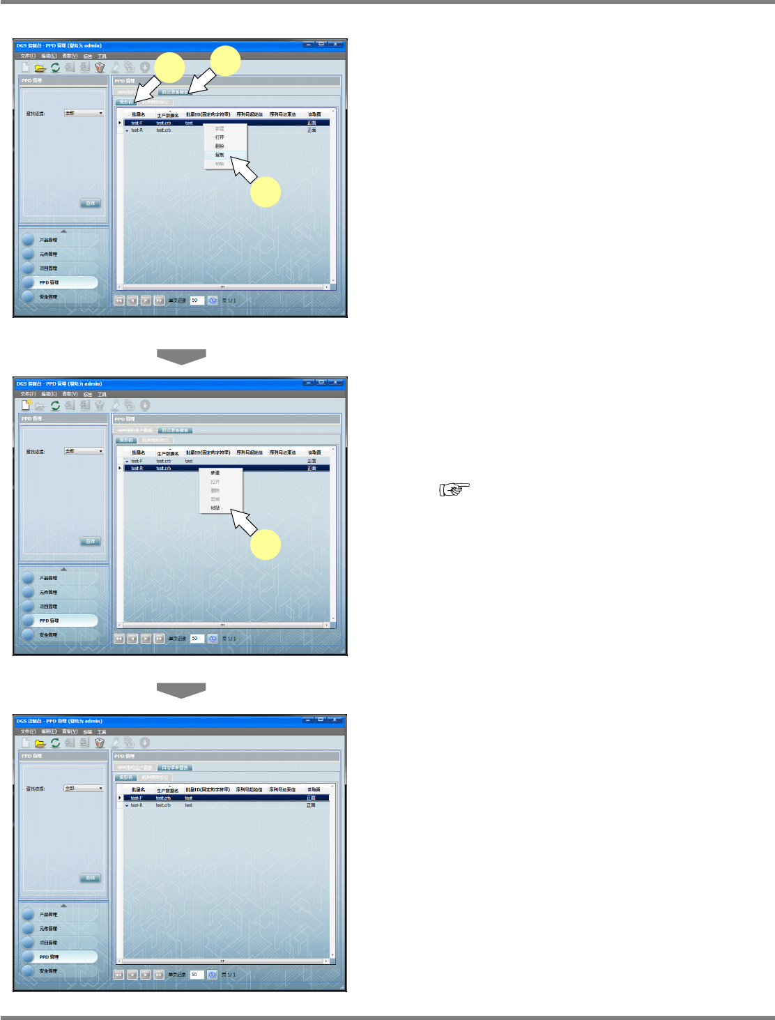 NPM-DGS 程序手册 9.3 生产数据的操作 Page 9-54 EJS9AC-MB-09P-24 条形码信息的复制 1 点击 [ 自动准备切换 ] 选项卡。 2 点击 [ 条形码 ] 选项卡。 3 从一览中选择复制 PCB 条形码的生产 数据后, 然后从右击菜单中选择 [ 复制 ] 。 4 从一览中选择粘贴 PCB 条形码的生产 数据,然后从右击菜单中选择 [ 粘贴 ] 。 执行复制 / 粘贴操作,数据需要属于从数据编 制…