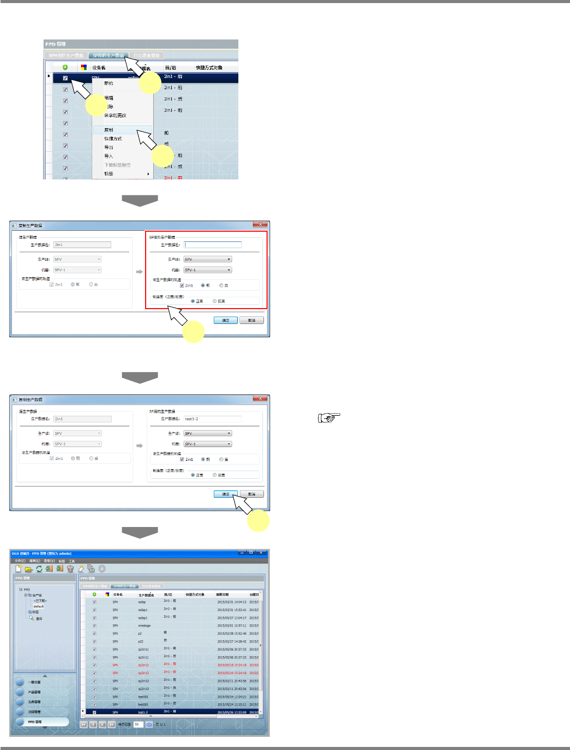 生产数据一览中显示所复制的