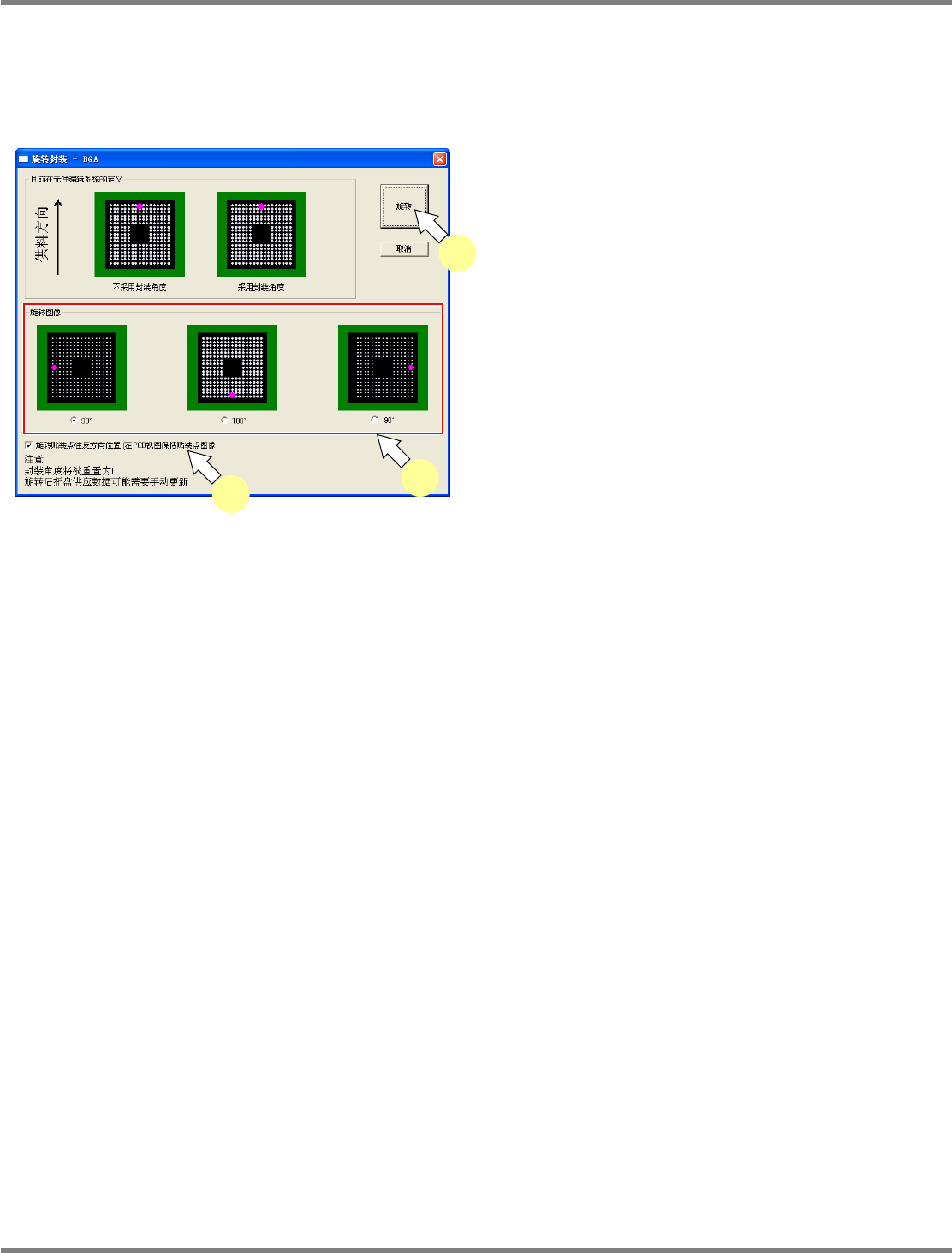 执行封装旋转后,封装角度将被设定为