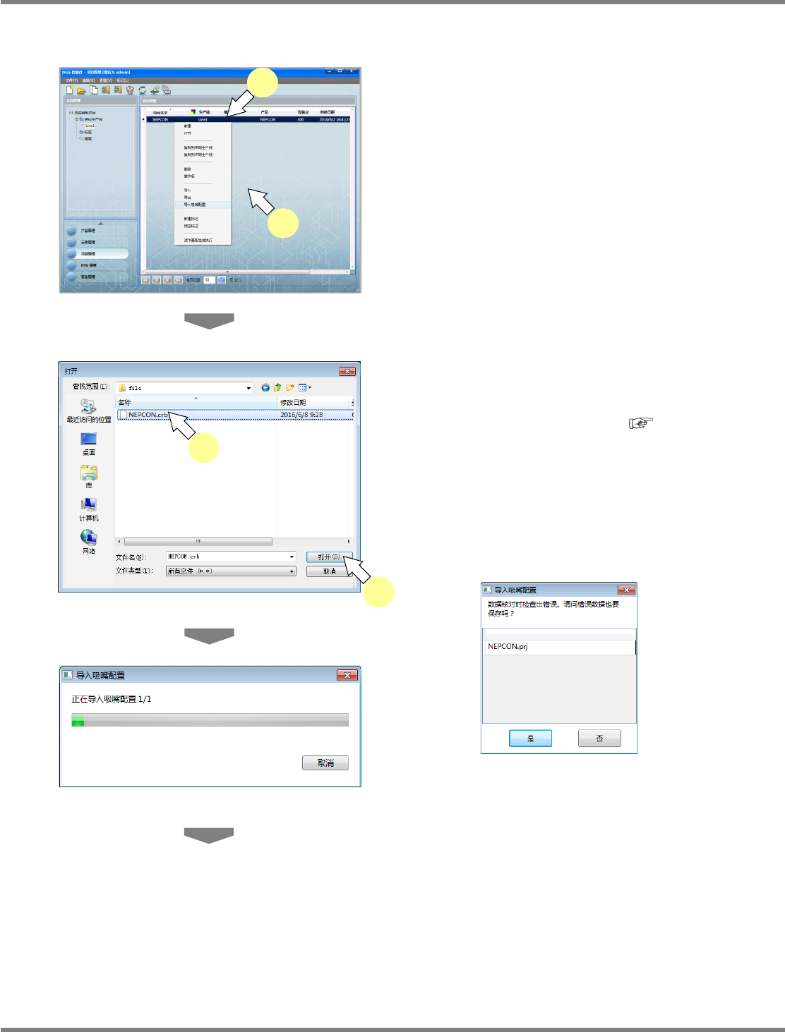 选择需要导入吸嘴配置的数据管理项