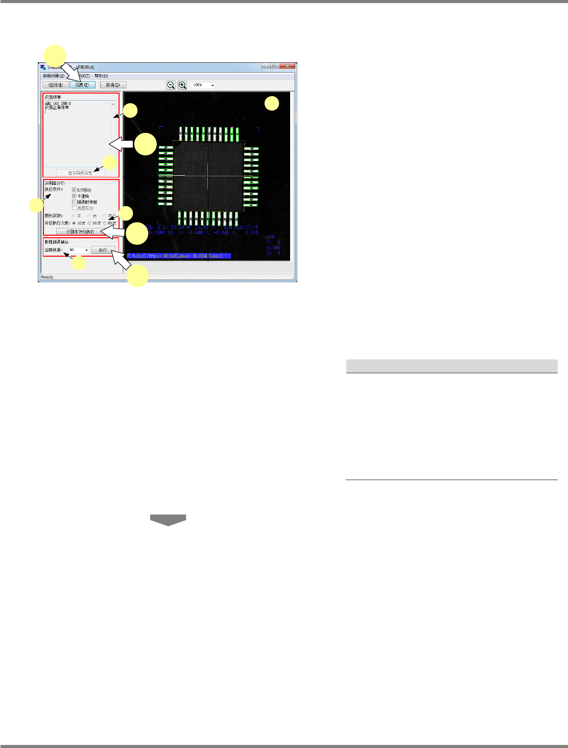 NPM-DGS 程序手册 11.4 用扫描设备制作识别选项数据的详情 Page 11-26 EJS9AC-MB-11P-11 3 针对需要确认极性的数据, 确认极性检 查是否正确动作。 极性错误确认 指定 f) 的 ‘ 回转角度 ’ 后点击 [ 执行 ] 。将在识 别结果中显示极性确认的执行结果。 当没有正确执行极性检查时, ANS 将为 100 以外的值。当 ANS 为 100 时,表示没有完 成极性判别, 这时请重新进行极性检查设定…