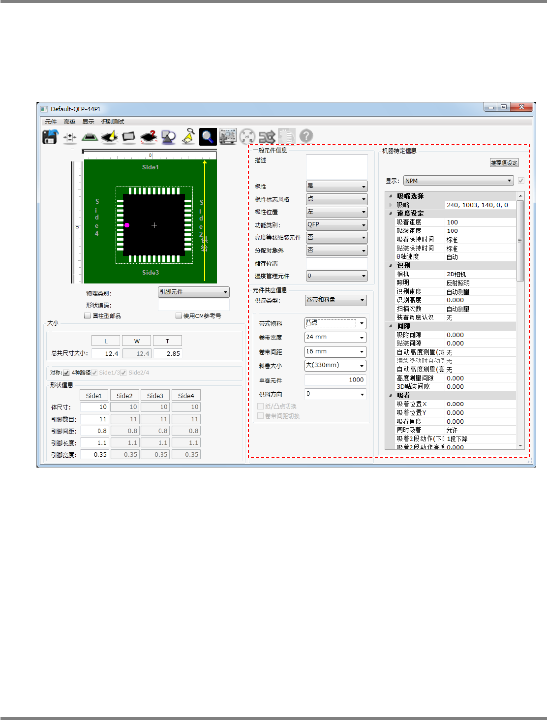 的元件编辑器进行供给方法、设备动作的有关参数等识别数据以外的设定。