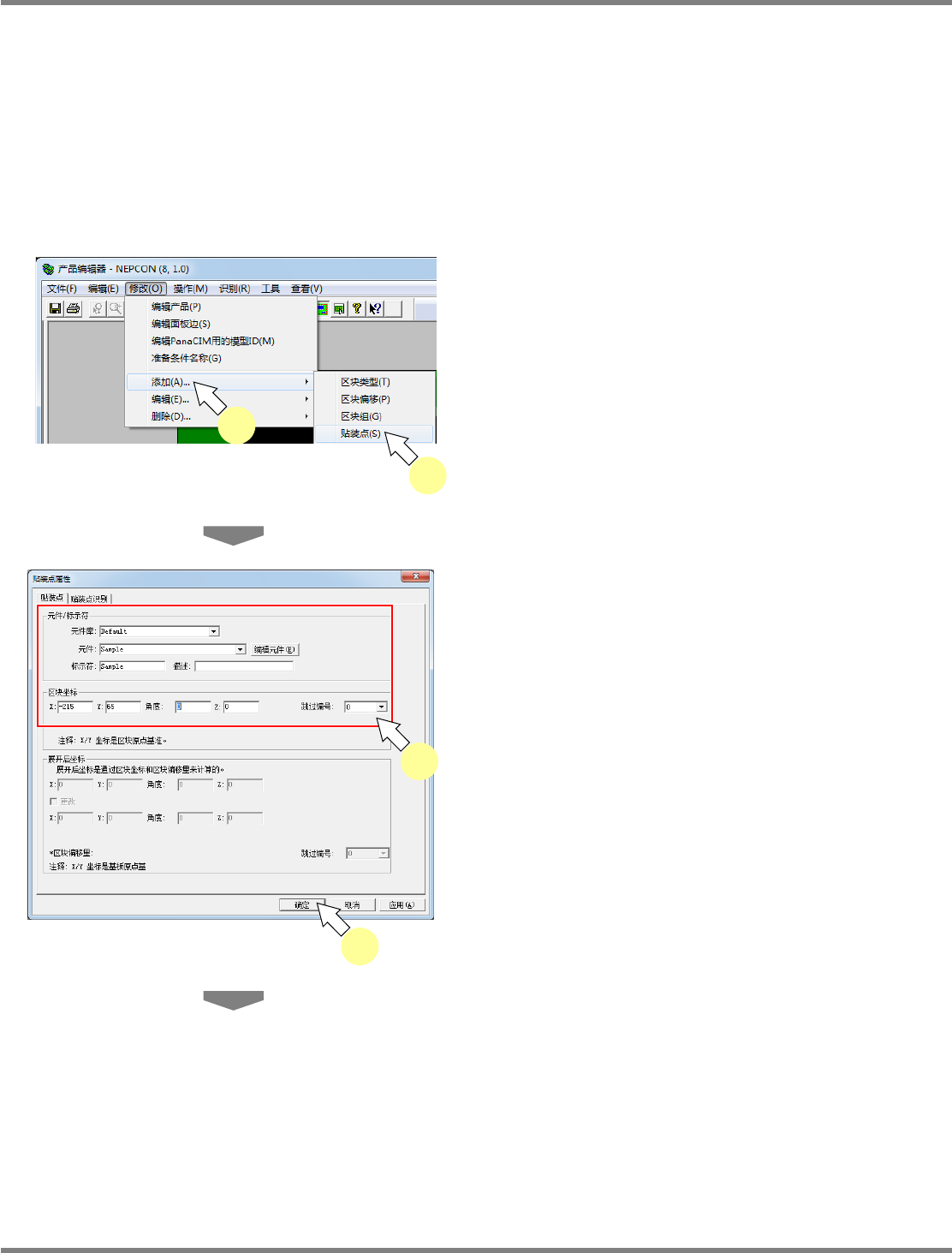 设定需要添加的贴装点坐标、参考编