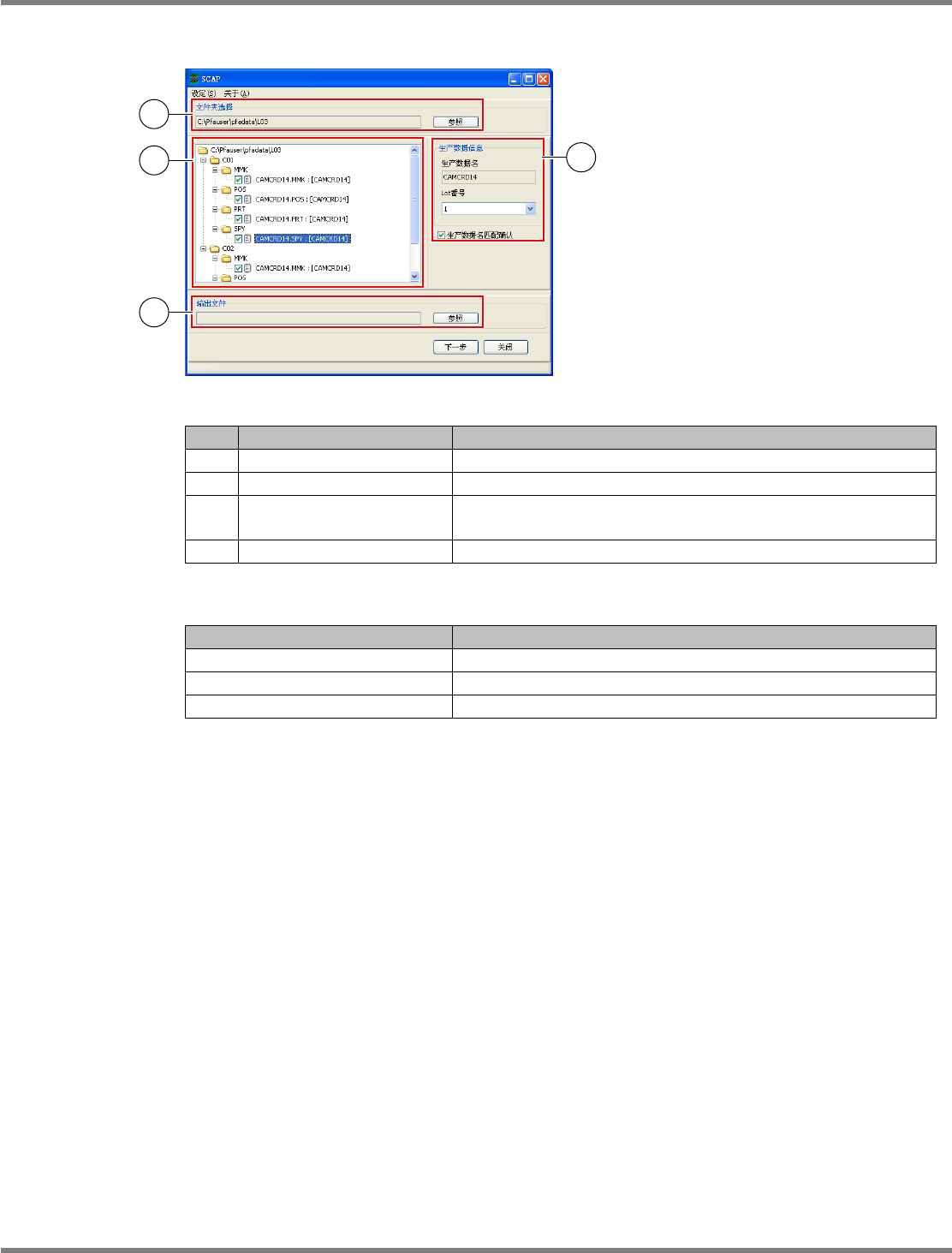 NPM-DGS 程序手册 13.5 SCAP (Special Convert A Panaser t) Page 13-100 EJS9AC-MB-13P-30 13.5.4 选择贴装机程序 贴装机程序的选择, 检查最 初转换程序名的 POS 文件, 然后检查是否存在拥 有相同程序名的 SET 、 PRT 等文件。 根据机种 的不同, 所需选 择的文件也有所不同。 关于每个机种的文件, 请参照 ‘13.5.5 转换对象贴装机 / 转换…