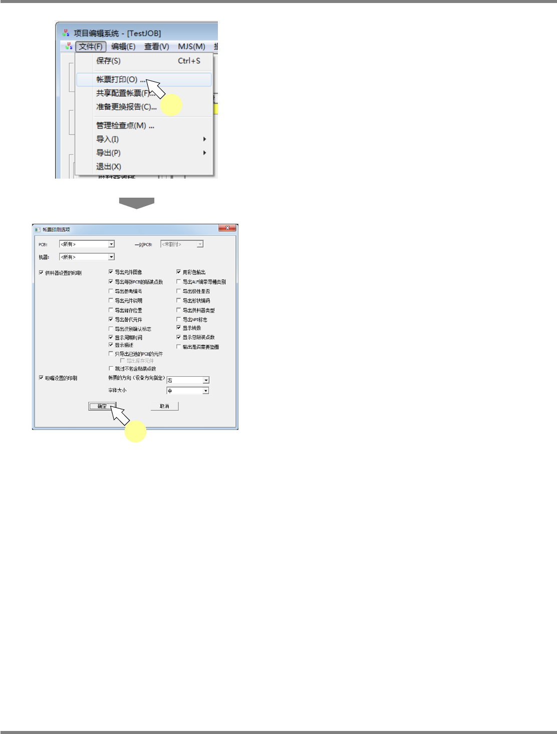 NPM-DGS 程序手册 7.2 项目编辑系统主画面 EJS9AC-MB-07P-35 Page 7-53 项目 说明 ‘ 导出库存元件 ’ 还输出库存元件。所谓的库存元件, 是指作为预备而配置在插槽 中的元件。当勾选了 ' 只导出已选的 PCB 的元件 ' 时,可设定本项 目。 ‘ 跳过不包含贴装点数 ’ 在贴装点数中不包含设为跳过元件与 跳过贴装点的贴装点。 ‘ 帐票的方向 ( 设备方向指定 )’ 指定帐票的设备…