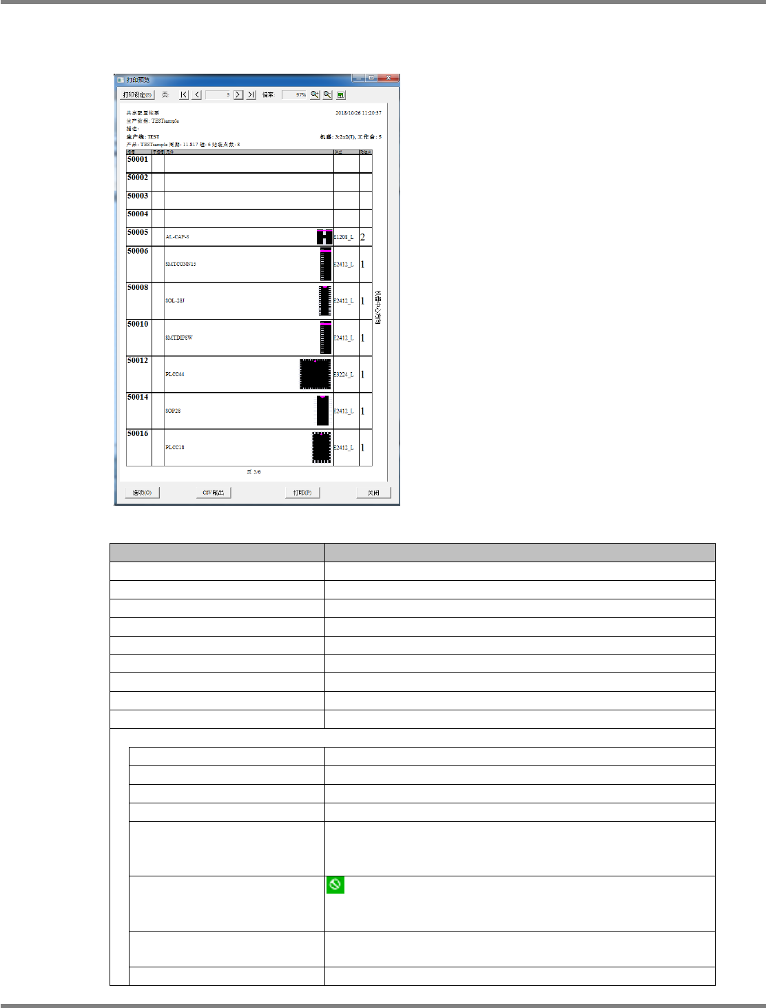 NPM-DGS 程序手册 7.2 项目编辑系统主画面 EJS9AC-MB-07P-35 Page 7-67 分配对象外信息 分配对象外信息,可从供料器配置信 息向前翻滚页面显示。 显示项目 項目 説明 ‘ 页 ’ 显示帐票的页码。 ‘ 倍率 ’ 显示打印预览的显示倍率。 ‘ 生产数据 ’ 显示制作数据的项目名称。 ‘ 描述 ’ 显示 PCB 列表画面的描述。 ‘ 生产线 ’ 显示生产线名称。 ‘ 机器 ’ 显示设备编号和设备名称…