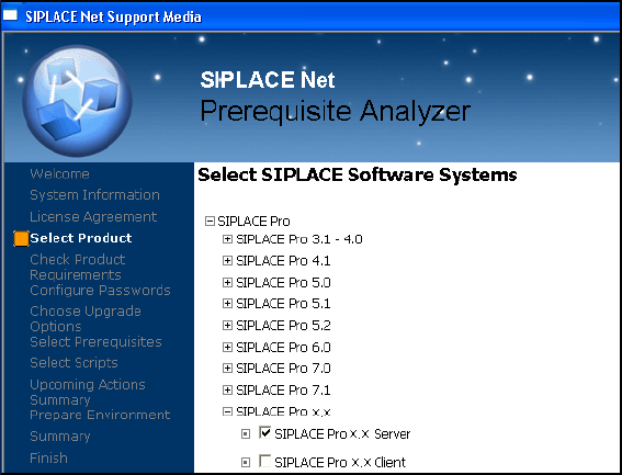 Wählen Sie im Fenster "Select SIPLACE Software Systems" das Produkt