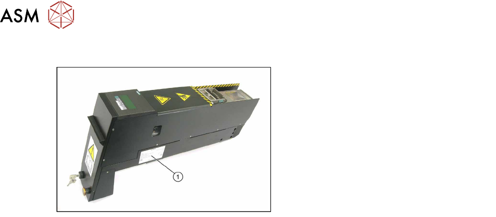 2 Übersicht 2.5 Seriennummer des Moduls 14 Serviceanleitung SIPLACE LDU-X Linear Dipping Unit 11/2017 2.5 Seriennummer des Moduls Die Seriennummer der LDU-X finden Sie auf dem Typenschild (1) .